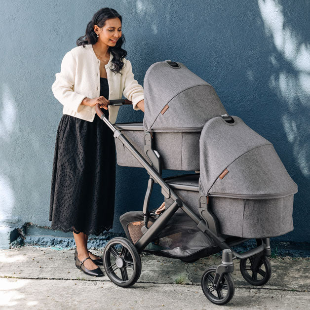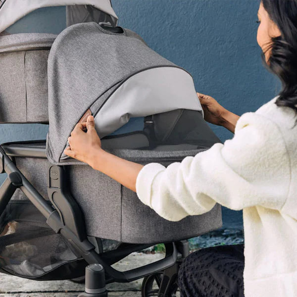 The UPPAbaby Bassinets seamlessly attach to the Vista frame, making it effortless to head out with your twins in comfort and style.